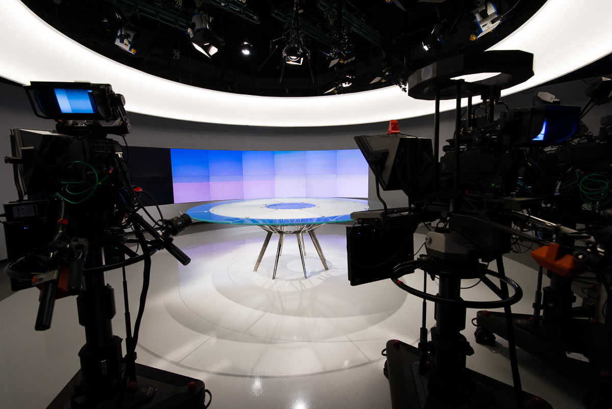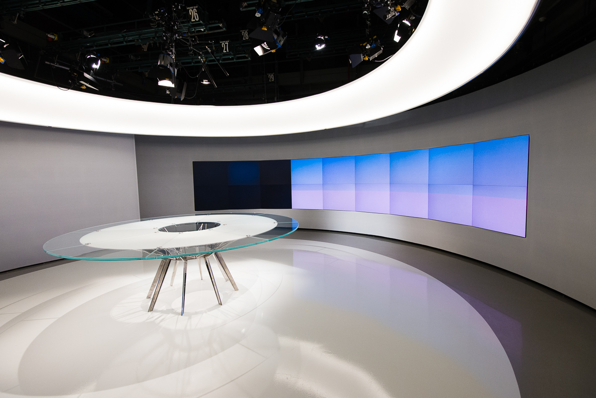 Podjetje ScenArt nas je povabilo k izvedbi projekta steklene namizne plošče sestavljene iz 9 delov, namenjene za osrednji element v studiu za novice na Televiziji Slovenija.